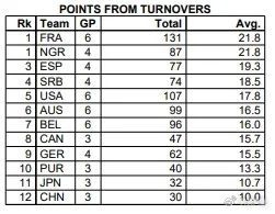各队对于反击快攻越来越重视,越来越鼓励球员抓对手立足未稳的机会,也是唐子婷观看奥运会高水平比赛的重要体会。以美国队举例,每场比赛她们利用快攻可以拿到21.8分,占球队场均得分的25%。数据显示,巴黎奥运会有6支女篮球队的场均快攻得分超过10分,中国女篮场均只有7.7分;而在利用对手失误得分上,中国队场均只有10分,排名12支球队中的倒数第一。