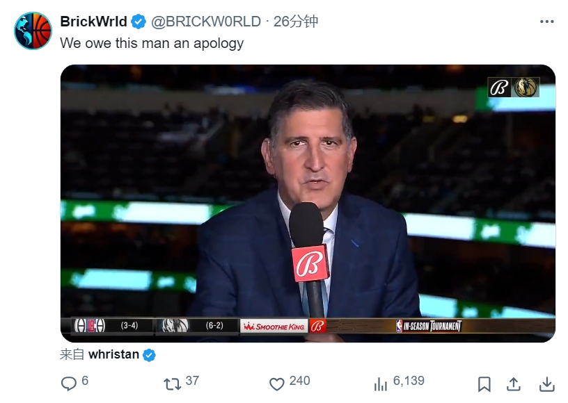 赛后,美媒转发了赛季初独行侠评论员怒喷哈登2分钟的视频,并表示:“我们欠这个人一个道歉。”