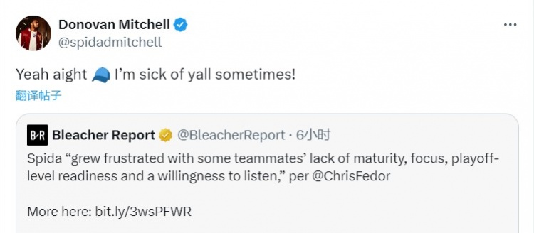 辟谣!米切尔转发他对队友不满的报道:有时候真的很讨厌你们