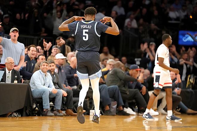 波普勒出生于2003年1月,现年22岁,身高196cm,体重89kg,是今年NBA选秀大会中的落选秀。上赛季波普勒从迈阿密大学转学加盟了维拉诺瓦大学,他在NCAA赛场总共出场36次,场均出场时间达到了31.9分钟,场均数据为15.2分7篮板1.5助攻1.3抢断0.2盖帽,还有1.8次失误和2.2次犯规,投篮命中率46%,三分命中率38.7%,罚球命中率85.6%。凭借着不俗的表现,波普勒入围了上赛季的Big East联盟最佳阵容三阵,这也说明了他的整体表现还是得到了充分地认可的。波普勒也算是一名在攻防两端都能够为球队提供帮助的球员,他的整体成熟度还是比较高的,只是他的年龄确实是偏大了一些,而且他在NCAA赛场上的进步幅度也是比较有限的,这也是导致他最终成为落选秀的重要因素。