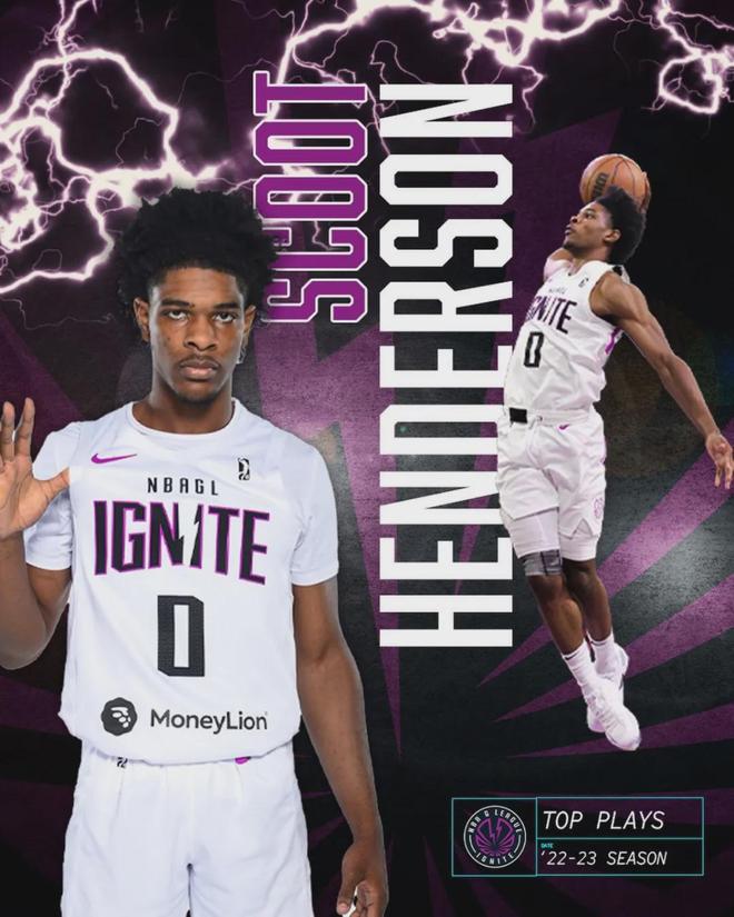 亨德森爆发力极强,垂直起跳达到112厘米,可惜一直没开发出三分球。2023年NBA选秀大会,马刺用状元签选中文班亚马;黄蜂榜眼签摘走布兰登-米勒;开拓者探花签选择亨德森。很多球探居然认为,亨德森比文班更快适应NBA。