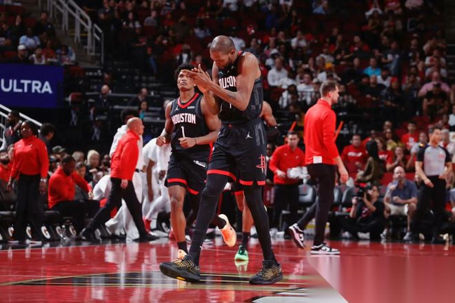 火箭队本赛季伤病问题严重,在赛季初就失去了防守悍将塔里-伊森,主力中锋阿尔佩伦-申京和史蒂文-亚当斯也都因伤缺席了一段时间的比赛,主力控球后卫弗雷德-范弗利特直接赛季报销,而休赛期最重要的侧翼引援多里安-芬尼-史密斯到现在都没有上演火箭队首秀。在这样的情况下,火箭队的球星挺身而出,凯文-杜兰特、阿门-汤普森和申京的总得分经常会占据球队总得分的一半。