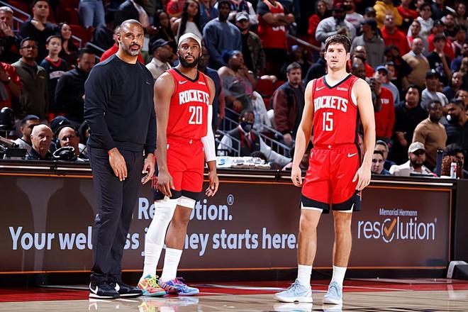 本场比赛中,火箭的替补后场大闸约什-奥科吉(Josh Okogie)并没有得到太多的出场时间和表现机会。奥科吉全场出场5分31秒,投篮3中1,三分线外2中0,仅得到了2分,没有任何其他数据入账,正负值为-5。奥科吉的出场时间非常有限,他在进攻端也没有展现出自己的投射能力,他也没有抓住机会命中空位投篮,他在进攻端确实是拖了球队的后腿。由于出场时间明显受限,奥科吉在防守端的表现其实也是没有办法发挥出来的。总体来看,奥科吉在本场比赛中的存在感实在是太低了一些,他最基本的特点也没有办法发挥出来,而且更令我们有些担心的是,他在进攻端的状态似乎也是在出现进一步的下滑的,他的自信心甚至都有些受到了影响。