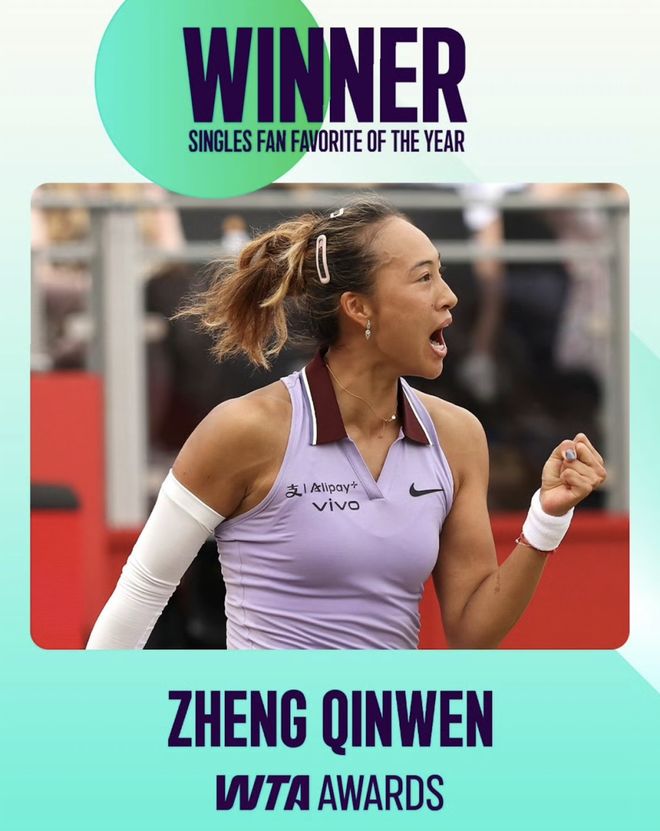 中国网球选手郑钦文连续第二年获得WTA最受欢迎球员。自2009年该奖项诞生以来,她是第六位当选的选手,也是唯一一位亚洲球员。虽然郑钦文的2026年并不顺利,世界排名跌出了前20,但