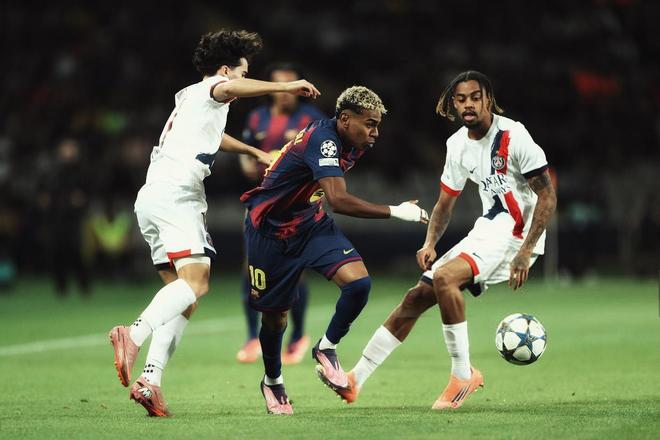 第24分钟,亚马尔中场被断,法比安-鲁伊斯直塞禁区,巴尔科拉半单刀机会推射打偏,大巴黎浪费扳平良机。第27分钟,场上出现争议判罚,埃里克-加西亚禁区内跟扎尔巴尼接触之后倒地,但裁判示意没有问题。