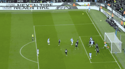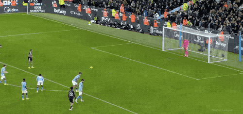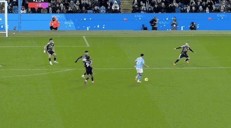 开场只有59秒,曼城就闪电领先。和B席做出精妙配合后,努内斯倒三角传中,福登四两拨千斤,轻松将球打进。