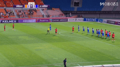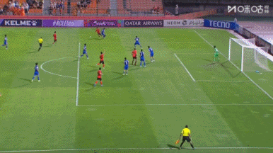 第45+1分钟,高天意边路任意球快开直塞左路,特谢拉内切兜射破门!申花1-0领先江原↓