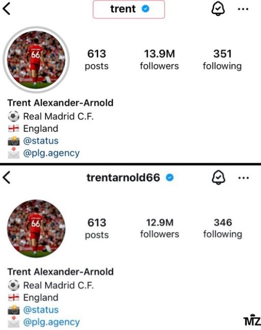 阿诺德更改社媒用户名,和皇马球衣所印姓名相同