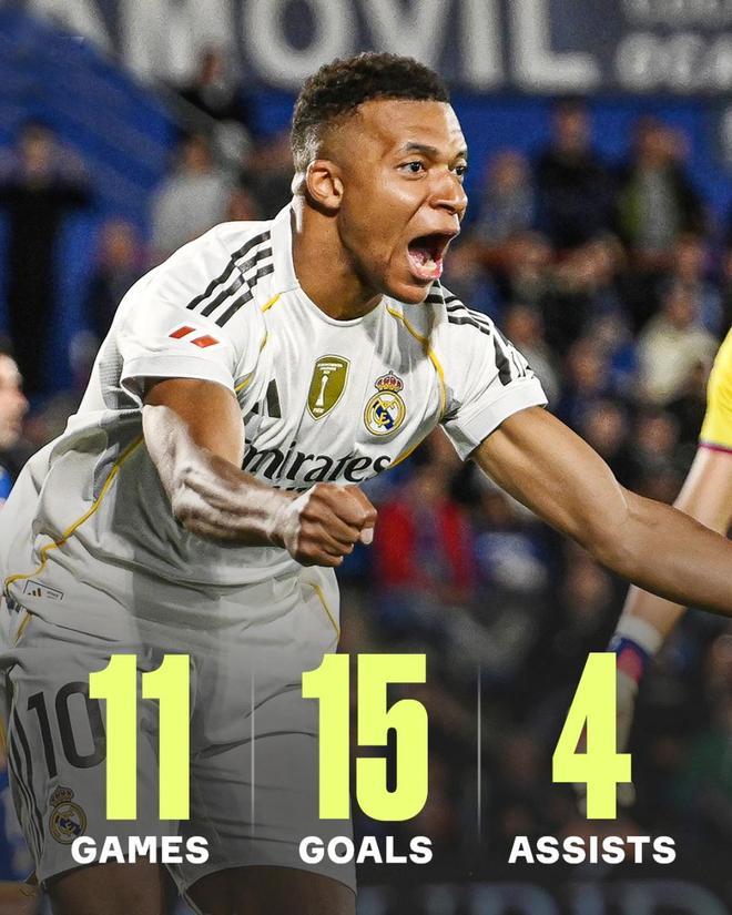 仅仅过了3分钟,补登场的居莱尔在中路送出精准直塞,姆巴佩前插,轻松推射打破僵局,皇马1-0!这粒进球,不仅帮助皇马领先,也让姆巴佩个人数据再次刷新,算上国家队比赛,他已经连续11场破门,期间打进15球外加4次助攻,直接参与19球,状态火爆。