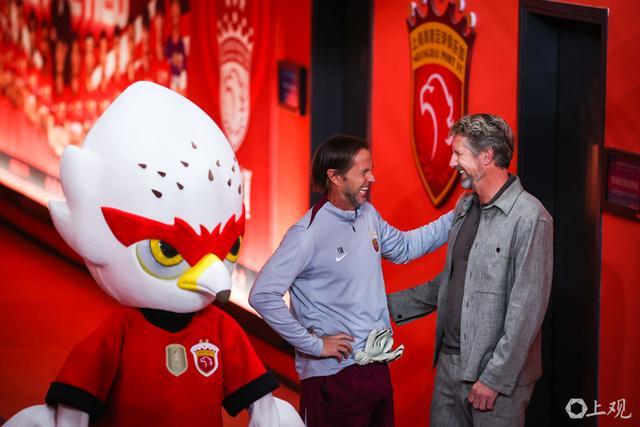 英超曼联队名宿、著名门将范德萨与吉祥物一同出场。