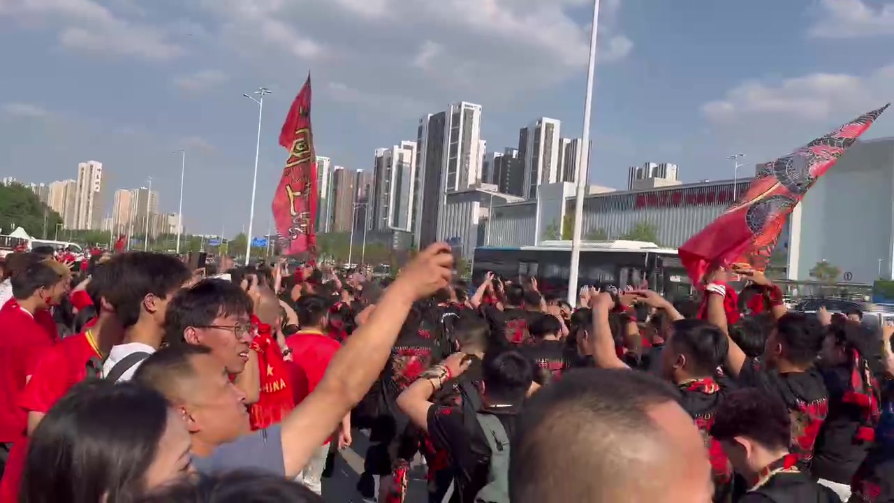 距离中泰之战开始前3个小时,球场外准备进场的球迷人山人海