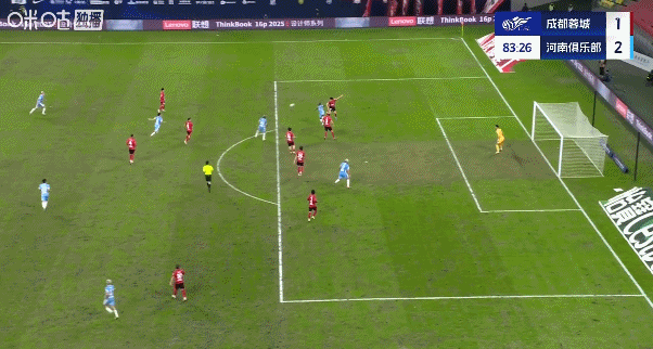 比赛第83分钟,何超禁区外35米打出世界波远射破门,河南2比1反超蓉城。