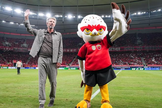 赛前,海港官宣了球队新推出的吉祥物,形象为白色雄鹰,名为“伊戈”。英超曼联队名宿、荷兰门将范德萨与吉祥物一同出场,引起球迷阵阵欢呼。